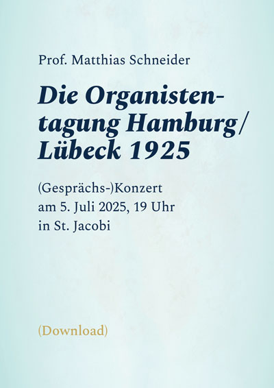 Das Jahr 1925 ist für die Entwicklung des Orgelbaus und der Orgelmusik im 20. Jahrhundert ein epochales Datum. Ohne diese Organistentagung unter der Leitung der Hamburger Künstlerpersönlichkeit Hans Henny Jahnn wäre der Wert der Schnitger-Orgel in St. Jacobi nicht erkannt und das Instrument im II. Weltkrieg nicht durch Ausbau geschützt worden. Das größte erhaltene Originalinstrument Schnitgers wäre heute nicht mehr da. So aber wurde diese Tagung die Geburtsstunde des Neo-Barock.